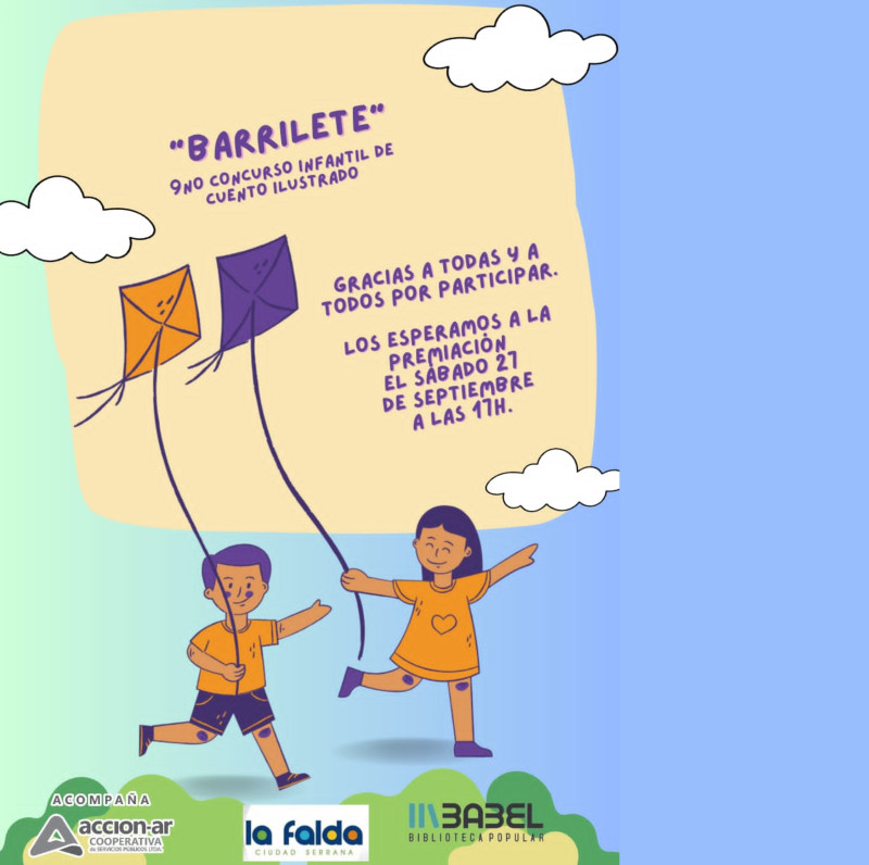 El pasado sábado se llevó a cabo la premiación del 9no Concurso infantil de Cuento ilustrado "Barrilete", organizado por la Biblioteca Popular Babel de La Falda.